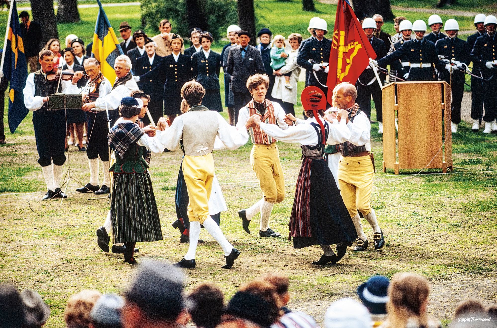 Månadens bild är dock enklare att identifiera. Den togs för drygt 50 år sedan på nationaldagen, 6 juni, och föreställer firandet av Svenska Flaggans dag i stadsparken.