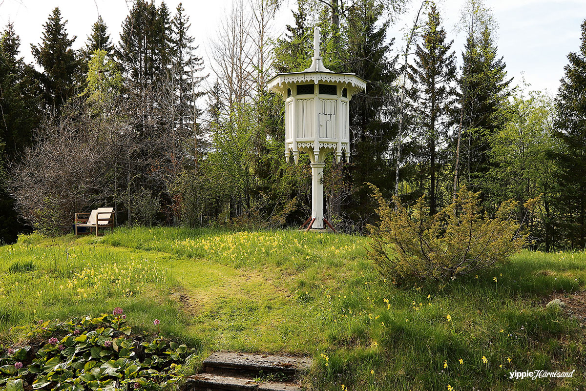 – Vi hade jordbruk då, med arrende där flygfältet och fotbollsplaner nu finns. Det är fantastiskt att bo här, så nära stan men ändå på landsbygden! Det finns en stor lekstuga med två verandor på tomten, men den har flyttats närmare huset på senare år. När Bengt var liten var det inga tekalas där inne, för huset stod nära vägen och användes ibland som förråd av Härnösands Golfklubb och Jaktskytteklubb. Dessutom slogs fönstren ofta sönder av förbipasserande. Inte särskilt lekvänligt, alltså, och Bengts far och mor flyttade till slut lekstugan närmare huset av säkerhetsskäl. Idag finns det små, små möbler där inne, en gammal barnvagn, leksaker och för den vuxna betraktaren fina takmålningar.