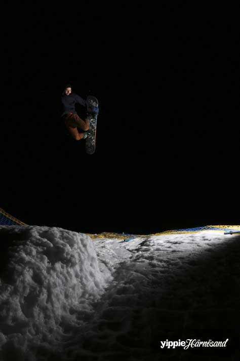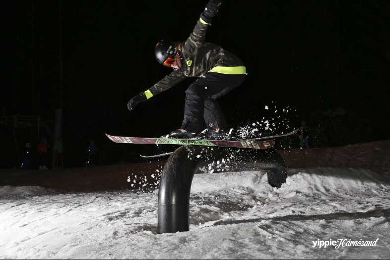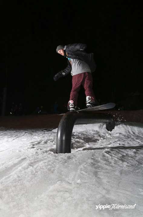 – Klockan elva har vi inåkning. Då får åkarna passa på att känna på banan innan tävlingen börjar på riktigt. Olika typer av hopp och rails har konstruerats för tävlingen och det är den som tar sig igenom banan med den mest kreativa åkningen som drar det längsta strået. Dessutom är det åkarna själva som bestämmer vem som vinner. Tävlingen är öppen för vem som helst att delta i, berättar Martin Gisselman
