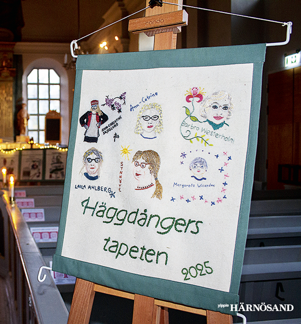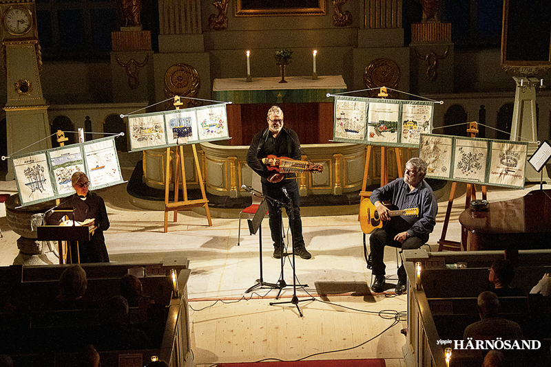 På utställningen i Häggdångers kyrka medverkade även prästen Johanna Janzon Wikström, till vänster, rikspelman Krister Häggmark och Kjell-Erik Näslund.